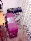| Hier noch einmal der Rechner etwas größer. Unter dem Diskettenlaufwerk (nicht mehr funktionstüchtig) sind 3 Schalter eingebaut. Damit lassen sich die rote Beleuchtung, der Lüfter darunter und die 3 Lüfter auf dem externen Radiator je nach belieben an- und ausschalten. Nun ist auch der Schlüsselstarter eingebaut. |