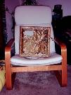 | Hier ist schon der Stoff befestigt. Vorher habeich das Lüfterloch in die Seite gesägt. Weiterhin wollte ich das Gehäuse innen mit 4 weißen LEDs beleuchten. Deshalb habe ich die ganze Verkabelung davon vorher eingebaut.