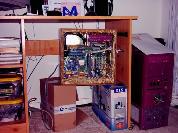 | Hier steht der Rechner schon am vorgesehen Platz. Die Festplattenaktivität wird durch eine blaue LED angezeigt, welche unter den CD-ROM-Laufwerk befestigt ist. Der CPU-Lüfter wurde mit einem Lüftertunnel ausgestattet, welcher allerdings